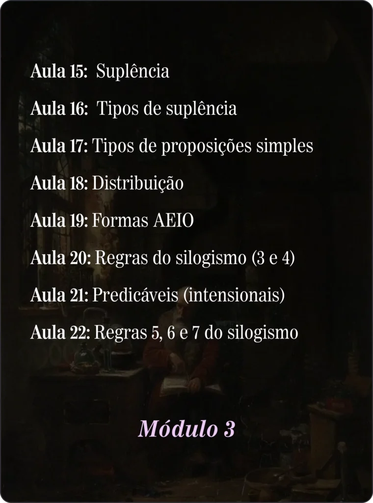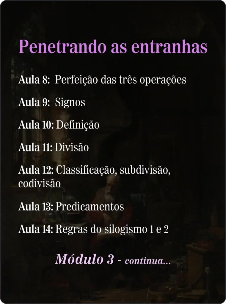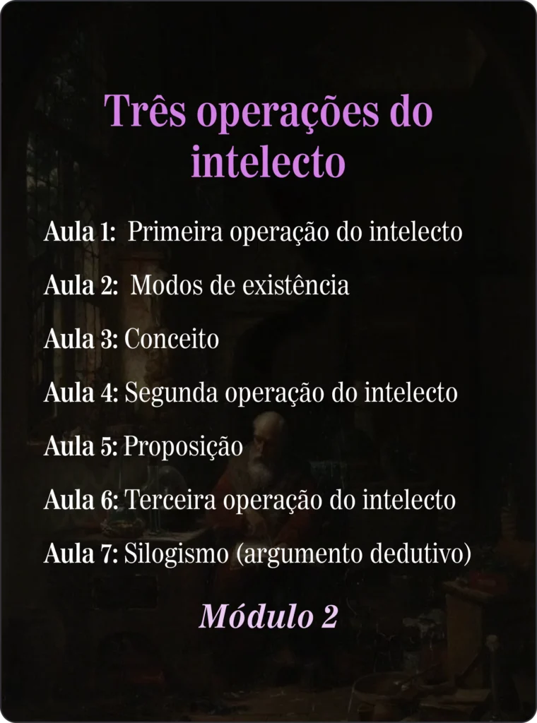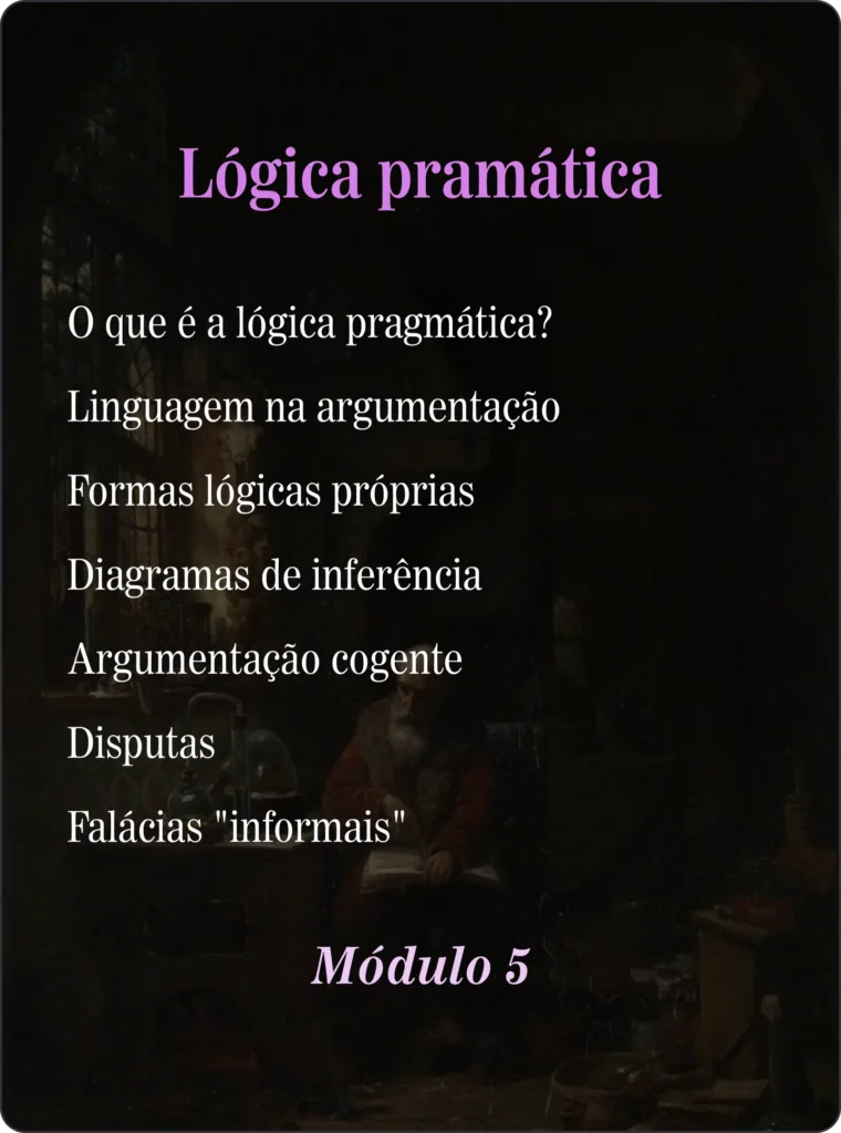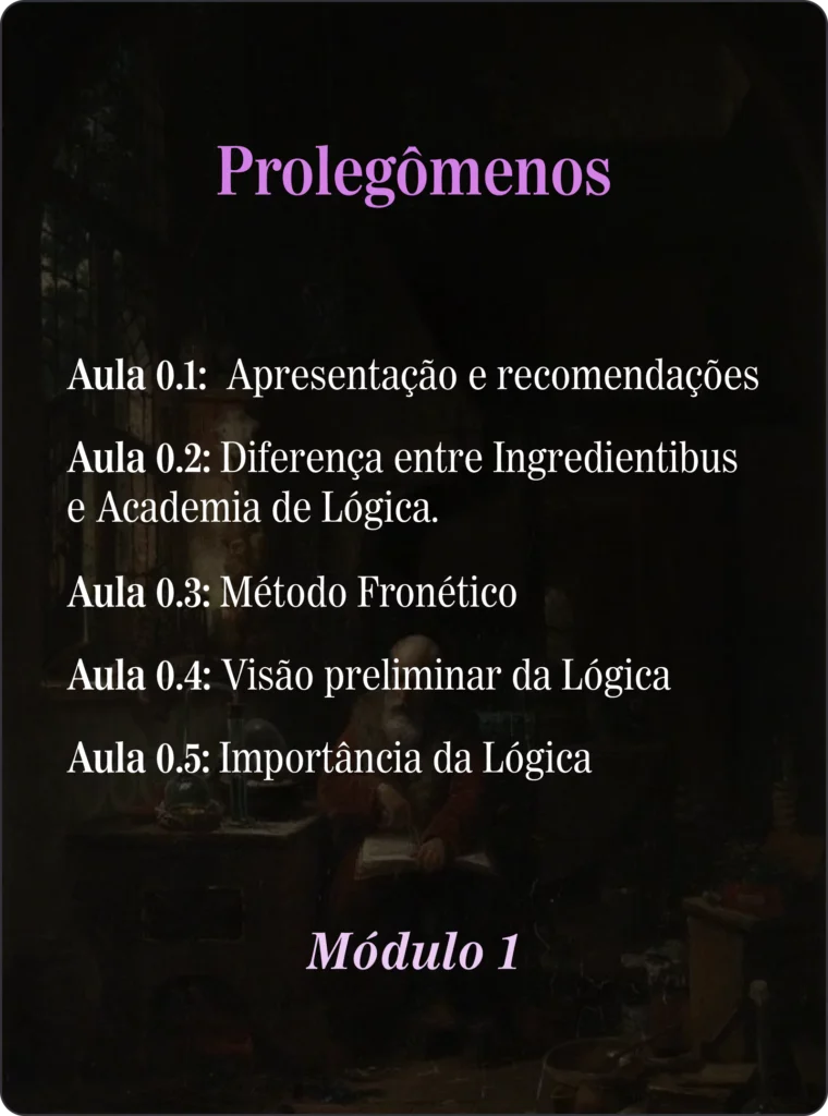 Aprofunde-se na arte do pensamento claro e rigoroso. O Ingredientibus ensina a lógica desde seus fundamentos até aplicações avançadas, formando uma inteligência disciplinada e preparada para a busca da verdade.